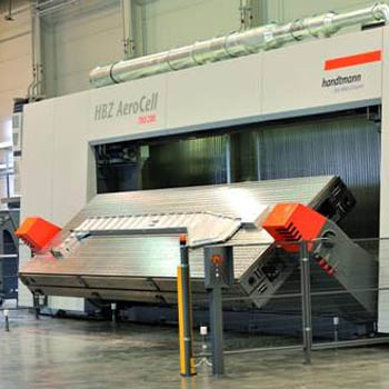 HBZ CompactCell小型卧式翻板加工中心工作台尺寸可为2米×1米,3米×1米及4米×1米,主轴功率可达1kW/30000rpm,X/Y/Z的移动速度可达60/40/60米/分钟,用于小型结构件的加工.
