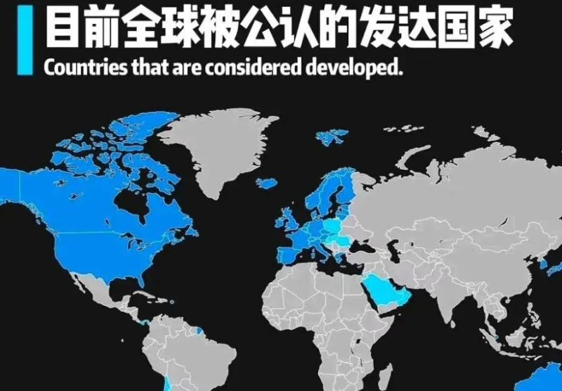 目前世界上已成为和接近发达国家的分布地图。