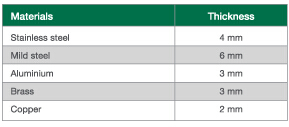 一个1千瓦光纤激光源,特别适合处理 材料和厚度表示,在接下来的 表: