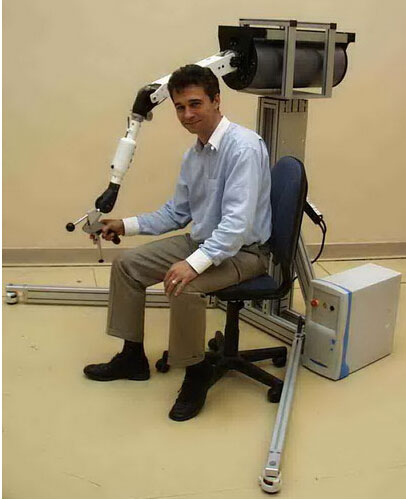 法国HAPTION公司是2001年从法国核能研究中心(CEA, French Nuclear ReseARCh Agency)的研发团队所分割出来的,拥有30年优势研发经验的专业公司。HAPTION以设计、制造并销售各类专业级的力反馈设备为主,力反馈系统是一种以触感的方式来控制计算机三维对象的高端设备 ;它是一部包含电子、马达与位置跟踪器所驱动的铰练式机械手臂,用户可以用手抓住机械手臂的末端来同时移动实际的机械手臂与计算机成像的三维对象。任何时候用户的手部都可以通过该设备感觉到跟虚拟的三维对象的任何一点接触,依照力道的大小模拟出真实的触感。HAPTION公司的产品在所有6自由度(包含移动与转动)上均可实现力反馈,实时的对三维对象交互产生实际触感。