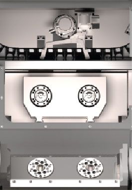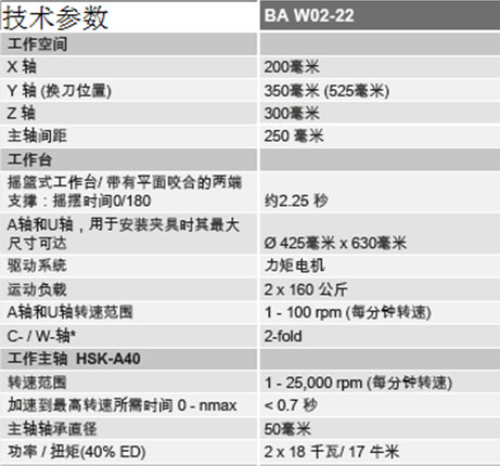 德国SW-machines埃斯维机床有限公司双主轴BA W02-22加工中心摇篮式工作台可实现加工工件的同时装卸工件,从而进一步缩短了非切削时间。