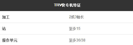 之所以自豪, 是因为 完美的结合 在速度与装载设备无懈可击的稳定性 之间实现, 这一切使TRV 快转印机 颇具竞争力。这些特征主要体现在了 旋转时间为0,16”的台子上, 维持了呈HIRTH牙列的台子锁定系统, 从而提高了精确度。. 操作单元 不仅需要充分利用速度,也需要利用加速度.。在减小运行空间的情况下 差值的作用得到充分体现.
