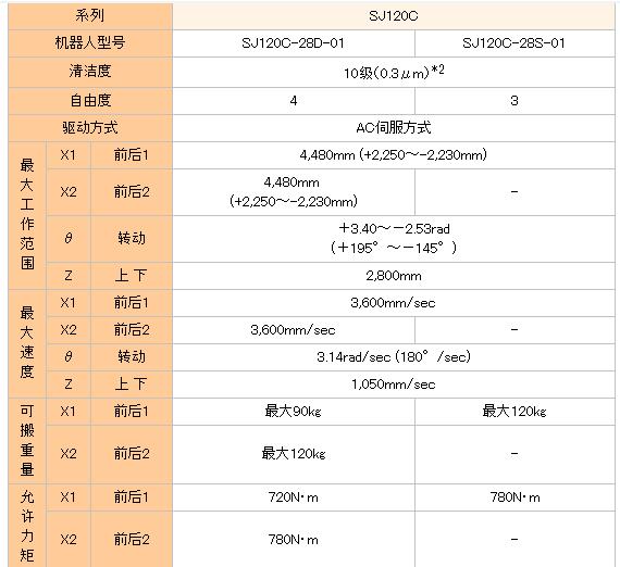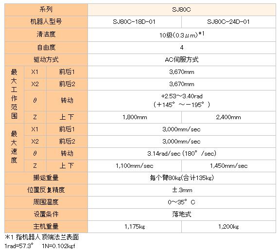 ●应用于第7代~第9代基板的系列产品 适用于包括第7代的SJ80C、以及第8、9代的SJ120C ●级别最高的旋转速度和前后轴速度 在所有尺寸中均缩短了周期 ●上下轴采用独有的连杆结构 能够抑制弯曲和振动的高刚度结构 无带式结构,确保高可靠性和安全性 ●活动部分的布线全部内置于手臂内 防止发生微米级尘埃,并使外观保持整洁