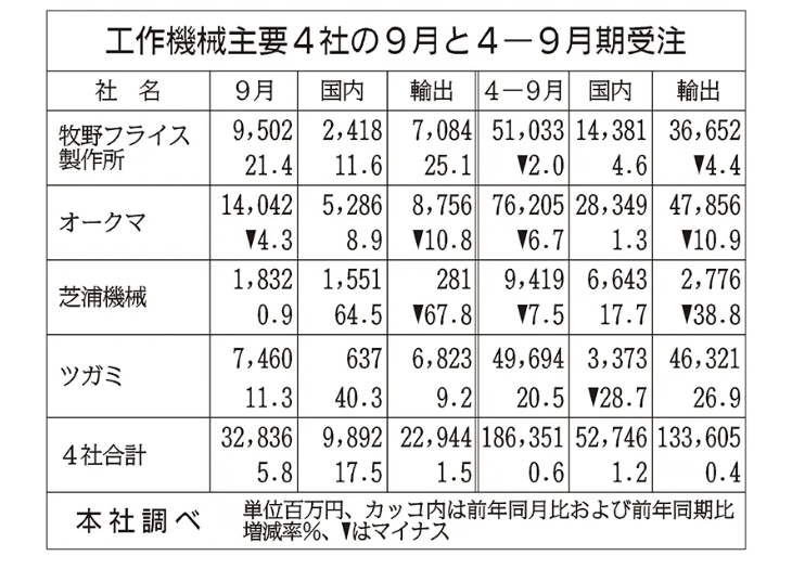 9月四大日本机床制造商订单同比增长5.8%,出口与内需双双回升